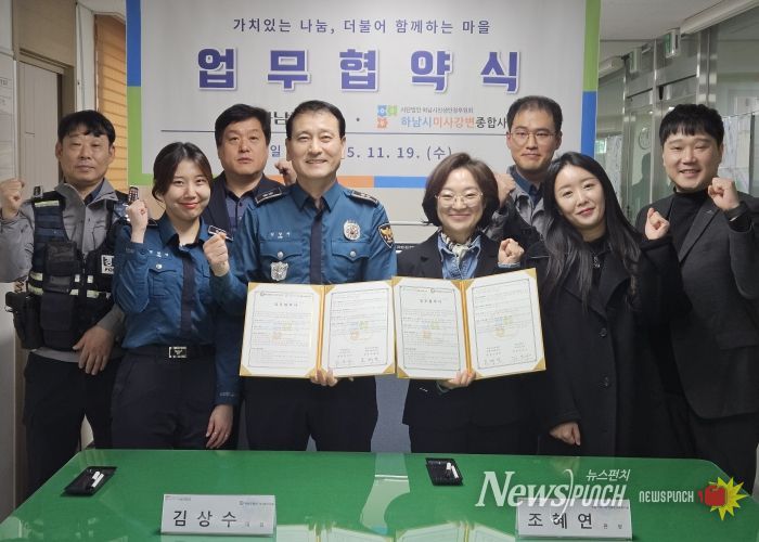 뉴스펀치 김길룡 기자 | 지난 19일, 하남경찰서 미사2지구대와 하남시미사강변종합사회복지관은 지역사회 안전망 구축과 복지사각지대 해소를 위해 상호 협력하는 업무협약을 체결했다.