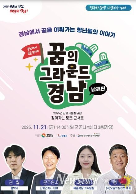 뉴스펀치 김길룡 기자 | 경남도는 21일 남해 꿈 나눔센터 강연장에서 경남 청소년 꿈 아카데미 ‘찾아가는 토크 콘서트’를 개최했다.