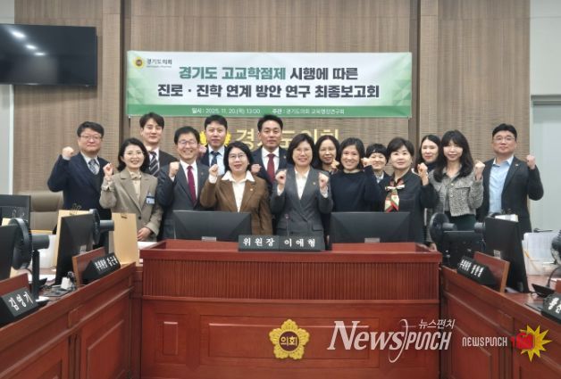 뉴스펀치 김길룡 기자 | 경기도의회 교육행정위원회 소속 의원 연구단체인 ‘교육행정연구회(회장 이애형)’는 20일 교육행정위원회 회의실에서 정책연구과제인 ‘경기도 고교학점제 시행에 따른 진로·진학 연계 방안 연구’의 최종보고회를 개최했다.