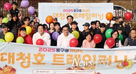 뉴스펀치 김길룡 기자 | 대전 동구는 22일 대청호 자연수변공원 일원에서 진행된 ‘2025 동구동런’의 특별편 ‘대청호 트레일러닝’이 성황리에 마무리됐다고 밝혔다.