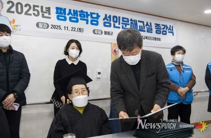 뉴스펀치 김길룡 기자 | 울릉군은 22일 송담양로원 어르신들과 울릉군평생교육지도자협의회 관계자 등 25여명이 참석한 가운데 2025년 평생학당 성인문해교실 종강식을 개최했다