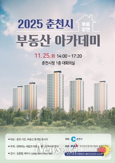 뉴스펀치 김길룡 기자 | 춘천시가 초고령화 시대에 접어들며 이슈가 되고 있는 부동산 세무의 핵심을 짚어보는 ‘2025 춘천시 부동산 아카데미’를 연다.
