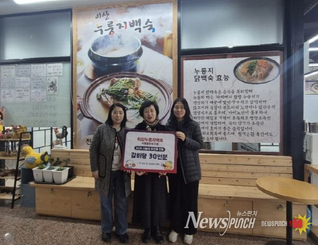 뉴스펀치 김길룡 기자 | 비산누룽지백숙 물왕호수점이 지난 11월 21일 추운 겨울 소외된 이웃에게 따뜻한 음식을 전하고자 정왕1동 취약계층을 위해 갈비탕 30인분을 후원했다.