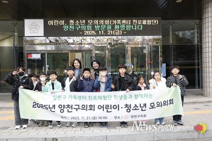 뉴스펀치 김완규 기자 | 서울시 양천구의회는 11월 21일 오후, 본회의장과 상임위원회실에서 양천구 가족센터 진로체험단 소속 초등학생 14명을 대상으로 ‘2025년 어린이·청소년 모의의회’를 개최했다.
