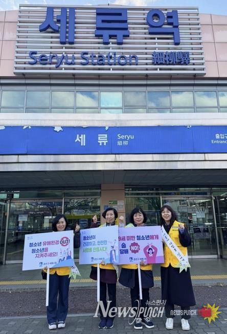 뉴스펀치 김길룡 기자 | 수원시 권선구 세류2동 행정복지센터은 지난 21일, 수능을 마친 청소년들의 안전한 귀가 유도와 유해환경 노출 예방을 위해 세류역 일대에서 청소년 지도위원과 함께 청소년 선도·보호 캠페인을 실시했다.