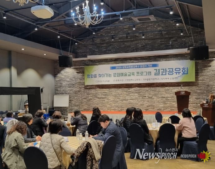 뉴스펀치 김길룡 기자 | 인천광역시교육청은 21일 강화 지역 유·초·중·고 학생 및 교직원 100여 명이 참여한 가운데 2025 강화교육발전특구 ‘평화를 찾아가는 문화예술교육 프로그램’ 결과 공유회를 개최했다.