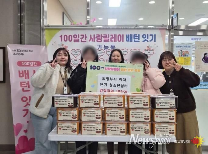 뉴스펀치 김길룡 기자 | 의정부시 가능동주민센터는 11월 20일 가능동에 위치한 의정부시여자단기청소년쉼터가 겨울철을 맞아 청소년들이 직접 준비한 김장김치 19상자를 기탁했다고 밝혔다. 전달된 김치는 관내 취약계층 가구에 배부될 예정이다.