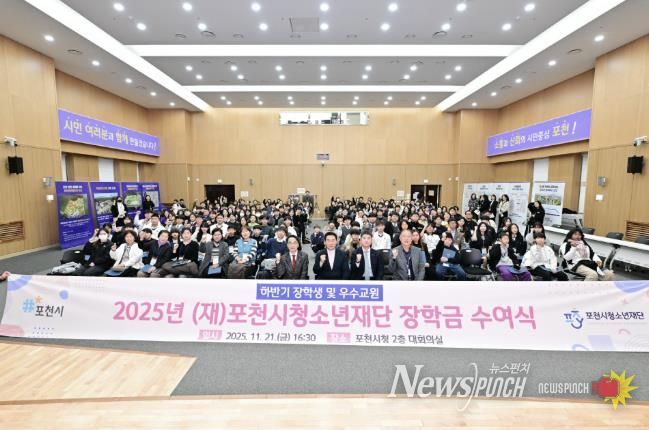 뉴스펀치 김길룡 기자 | (재)포천시청소년재단은 지난 21일 포천시청 대회의실에서 2025년 하반기 장학금 수여식을 개최해 장학생과 학부모 등 200여 명이 참석해 축하와 격려를 나누는 뜻깊은 시간을 가졌다.