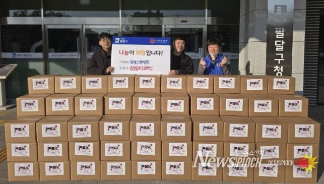 뉴스펀치 김길룡 기자 | 피에스케이 주식회사는 지난 22일, 동광원 등 관내 사회복지시설을 위해 김장김치 120박스를 팔달구청(구청장 이상균)에 기부했다.