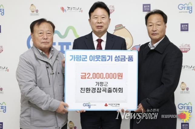뉴스펀치 김길룡 기자 | 가평군친환경잡곡출하회는 지난 21일, 지역사회 나눔 실천의 일환으로 이웃돕기 성금 200만원을 가평군청에 기탁했다. 이번 기탁은 겨울을 앞두고 취약계층에게 따뜻한 손길을 건네고자 마련된 것으로, 지역 농가의 정성과 연대의 의미가 더해졌다.
