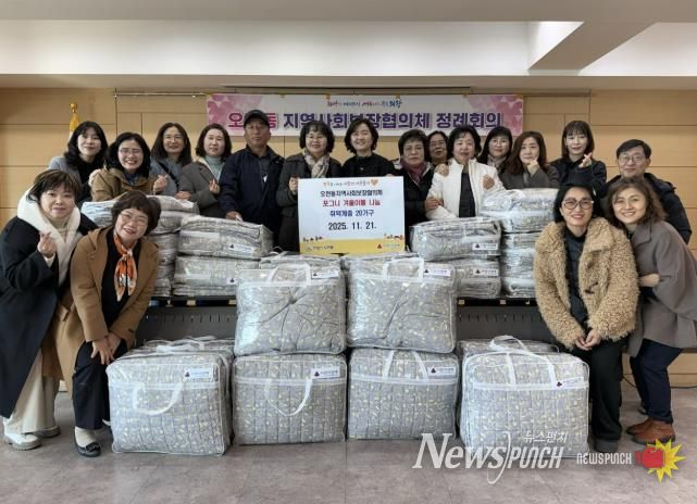 뉴스펀치 김길룡 기자 | 의왕시 오전동지역사회보장협의체는 11월 21일 지역 내 독거 어르신 20명을 위한 '포그니 겨울 이불 지원' 사업을 추진해 어려운 이웃들에게 따뜻한 손길을 건넸다.