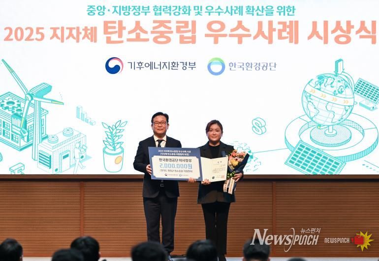 뉴스펀치 김길룡 기자 | 연천군탄소중립지원센터가 2025년 전국 지자체 및 공공기관을 대상으로 한 ‘탄소중립 실천 우수사례’ 공모에서 환경공단 이사장상을 수상했다.