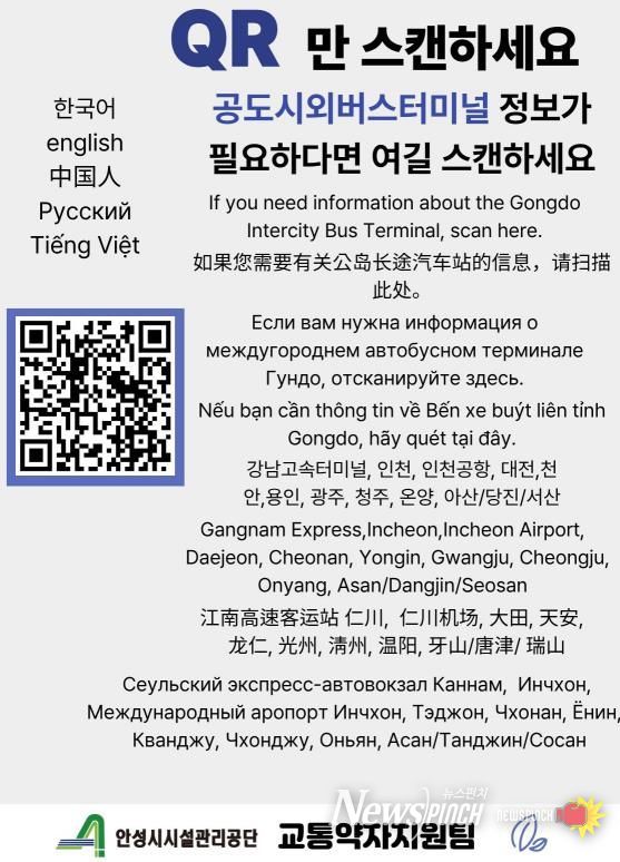 뉴스펀치 김길룡 기자 | 안성시시설관리공단 교통약자이동지원센터은 교통약자 지원을 위한 특수교통수단 배차 및 운영 서비스를 담당하고 있다. 그러나 사무실이 터미널 내부에 위치함에 따라 일반 버스 이용 관련 문의가 반복적으로 발생해 민원 혼선이 이어지고 있다. 이에 공단은 이러한 불편을 해소하고 정확한 정보를 제공하기 위해 ‘포용교통 안내서비스(QR 안내 시스템)’를 도입했다고 밝혔다.