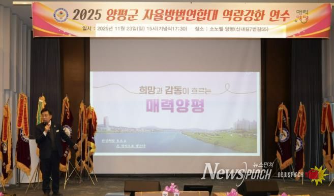 뉴스펀치 김길룡 기자 | 양평군자율방범연합대는 지난 23일 개군면 소노벨에서 자율방범대원 300여 명이 참석한 가운데 자원봉사 및 직무교육 등 역량 강화 연수를 실시했다.