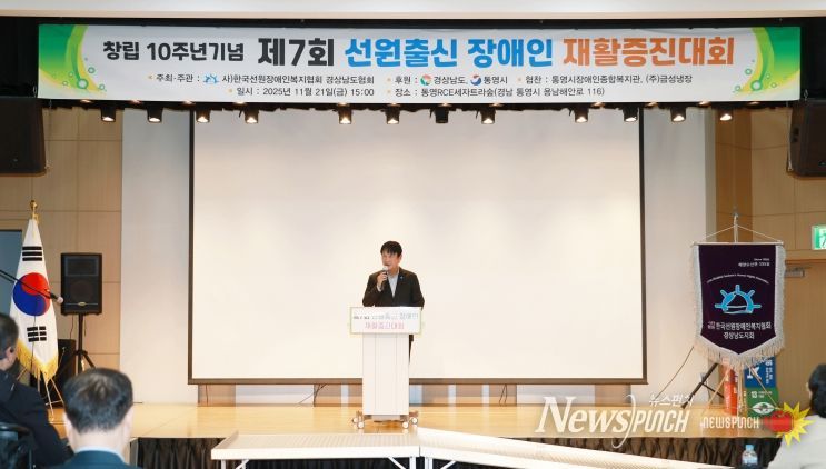 뉴스펀치 김길룡 기자 | 한국선원장애인복지협회 경상남도협회(회장 장재군)는 지난 21일 통영RCE세자트라숲 강당에서 협회 회원 및 가족 등 100여명이 참석한 가운데 선원장애인의 재활의식 향상, 사회참여 및 복지발전을 위한 ‘제7회 선원출신 장애인 재활증진대회’를 개최했다.
