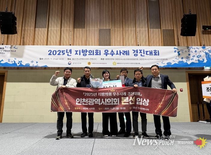 뉴스펀치 김길룡 기자 | 인천광역시의회가 최근 울산시 전시컨벤션센터에서 열린 행정안전부 주관 ‘2025년 지방의회 우수사례 경진대회’에서 우수상을 수상했다고 24일 밝혔다.