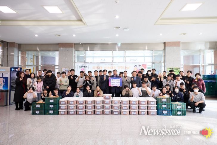 이번 행사는 회천신도시 아름다운 회천사람들이 경기도자원봉사센터의 ‘2025 도민이 전하는 자원봉사 김장 지원사업’에 선정되어 지원받은 보조금으로 마련됐으며, 호텔조리학과 학생들이 직접 정성껏 김장을 담가 더욱 뜻깊은 시간을 만들었다.