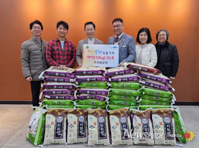 뉴스펀치 김길룡 기자 | 이천시 송정동 소재 주사랑교회는 지난 11월 21일, 관내 취약계층을 위한 백미(10kg) 55포를 증포동행정복지센터에 기탁했다.