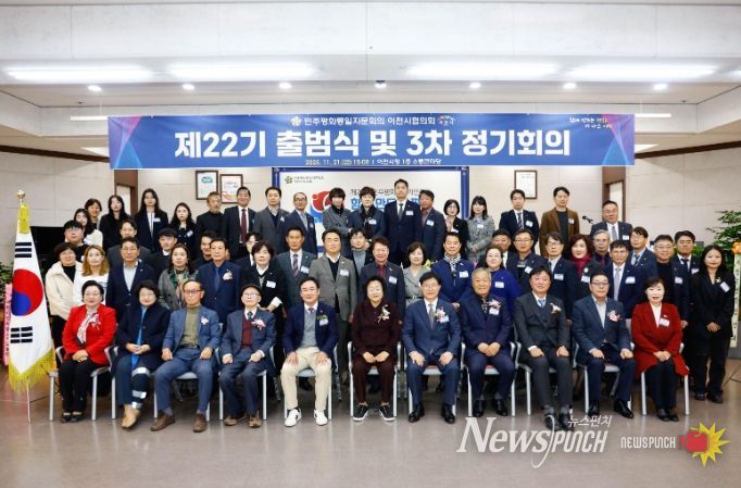 뉴스펀치 김길룡 기자 | 민주평화통일자문회의 이천시협의회는 11월 21일 오후 3시 이천시청 1층 소통큰마당에서 김경희 이천시장, 박명서 시의회 의장, 역대 회장, 자문위원 등 70여 명이 참석한 가운데 ‘제22기 출범식 및 2025년 제3차 정기회의’를 개최했다.