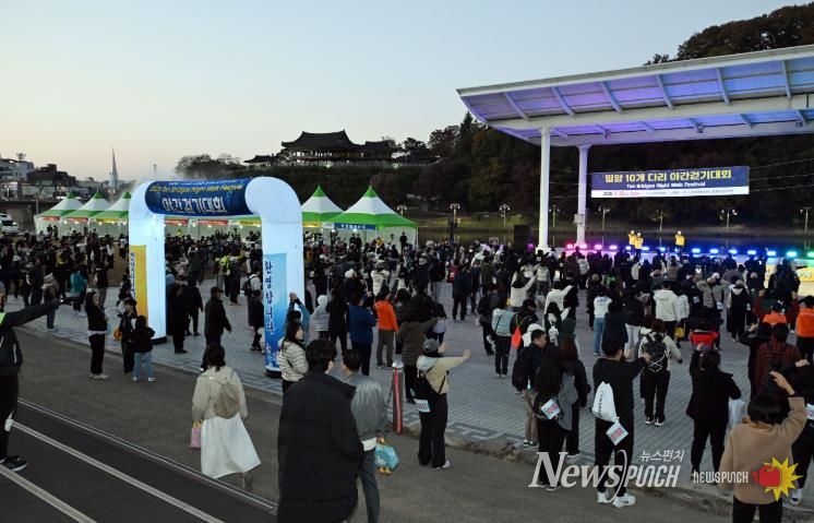 뉴스펀치 김길룡 기자 | 밀양문화관광재단은 지난 22일 밀양시 일원에서 밀양의 밤을 걷고, 맛보고, 즐기는 밀양 10개 다리 야간 걷기대회(Ten Bridges Night Walk Festival)’을 성황리에 개최했다.