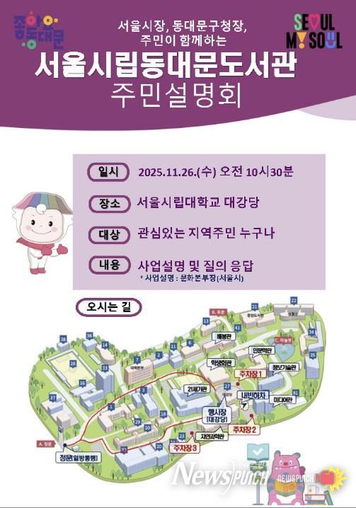뉴스펀치 김완규 기자 | 서울 동대문구는 오는 26일 오전 10시, 서울시립대학교 대강당에서 ‘서울시립동대문도서관 건립 주민설명회’를 개최한다고 밝혔다.