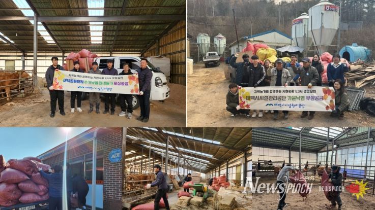 뉴스펀치 김길룡 기자 | 태백시시설관리공단은 폐낙엽 자원순환 사업의 일환으로 지난 11월 19일과 20일 관내 축산농가 2곳에 폐낙엽 200포를 1차로 기부했다고 밝혔다.