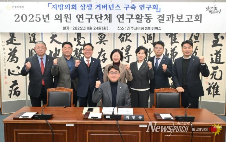 뉴스펀치 김길룡 기자 | 진주시의회는 지난 24일 의원 연구단체 ‘지방의회 상생거버넌스 구축 연구회’가 최종 연구활동 결과보고회를 개최했다고 밝혔다.