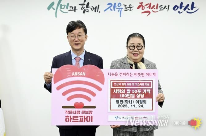 뉴스펀치 김길룡 기자 | 안산시는 지난 24일 씽코로부터 사랑의 쌀 50포(10kg)를 기탁받았다고 25일 밝혔다.