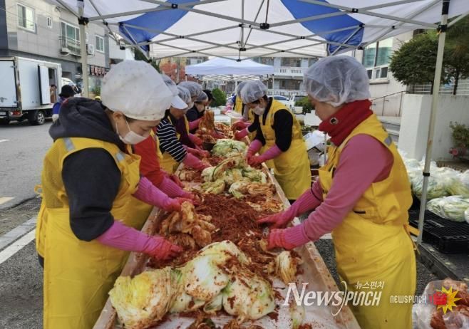 뉴스펀치 김길룡 기자 | 수원 징검다리봉사단은 지난 23일 수원시 장안구 정자2동 행정복지센터 주차장에서 사랑의 김장 담그기 행사를 진행했다.