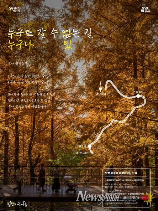 뉴스펀치 김완규 기자 | 서울시는 10월 25일 개방한 ‘남산 하늘숲길’이 개방한 지 한 달만에 누적 방문객 9만 명을 돌파했다고 밝혔다. 단풍이 절정에 이르는 11월 중순에는 특히 아름다운 경관을 자랑하며, 하루 최대 6,680여 명이 방문하는 새로운 단풍 명소길로 급부상했다.