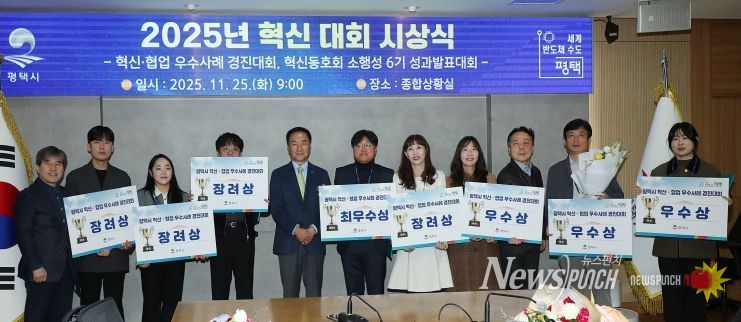 뉴스펀치 김길룡 기자 | 평택시는 25일 시청 종합상황실에서 ‘2025년 평택시 혁신·협업 우수사례 경진대회’ 시상식을 진행했다고 밝혔다.