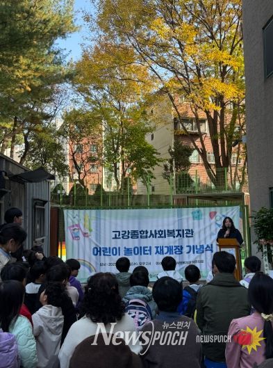 기존 놀이시설은 고강종합사회복지관 건물 뒷편에 위치하여 잘 보이지 않고 노후화되어 이용이 저조한‘방치 공간’이었으나, 이번 리모델링을 통해 밝고 생동감 넘치는 어린이 중심 열린 공간으로 탈바꿈했다.