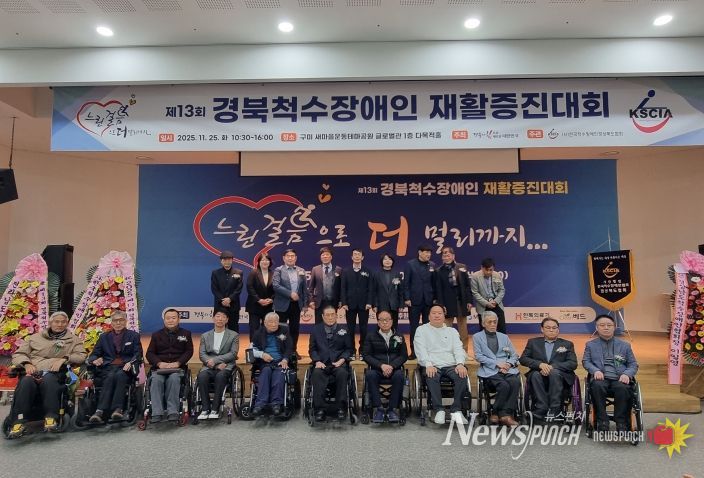뉴스펀치 김길룡 기자 | 구미시는 지난 25일 새마을테마공원 글로벌관 다목적홀에서 사)한국척수장애인협회경북협회(회장 최영수) 주관으로 ‘제13회 경북척수장애인 재활증진대회’를 열었다. 경북 11개 척수지회 회원과 가족, 관계자, 내빈 등 약 650명이 참석해 중증 장애로 인한 어려움을 함께 극복하고 재활 의지를 북돋는 자리로 마련됐다.