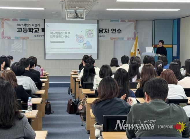 뉴스펀치 김길룡 기자 | 울산광역시교육청은 25일 다산홀에서 고등학교 학교생활기록부 업무 담당자 61명을 대상으로 ‘배움‧성장 지원을 위한 학교생활기록부 기재 역량 강화 연수’를 열었다.