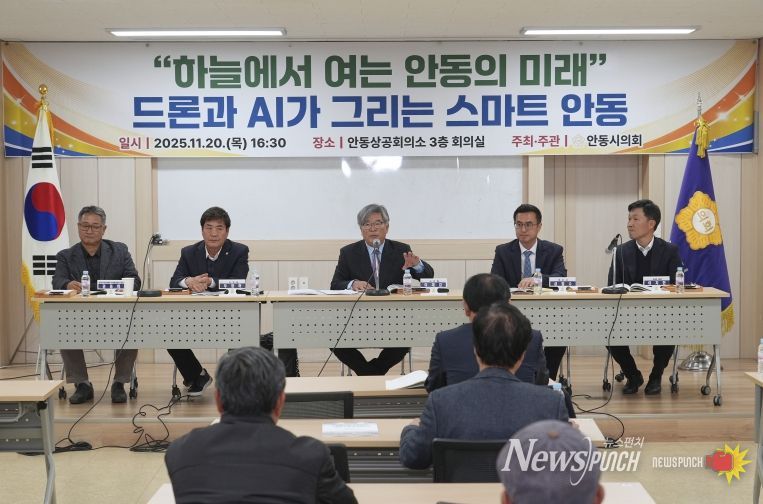 뉴스펀치 김길룡 기자 | 안동시의회는 11월 20일 16시, 안동 상공회의소 3층 회의실에서“하늘에서 여는 안동의 미래, 드론과 AI가 그리는 스마트 안동”를 주제로 정책토론회를 개최했다.