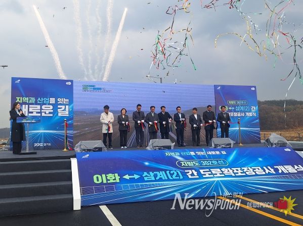 뉴스펀치 김길룡 기자 | 경기도는 25일 평택시 청북읍 삼계리 일원에서 ‘지방도 302호선 이화~삼계(2)구간 도로확포장공사’ 개통식을 진행했다.