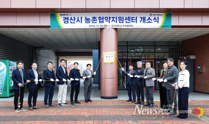 뉴스펀치 김길룡 기자 | 경산시는 대구대학교와‘경산시 농촌협약지원센터 위·수탁 협약’을 체결하고, 25일 행정기관과 농촌지역 주민 간 중간 지원조직인 경산시 농촌협약지원센터를 개소했다.
