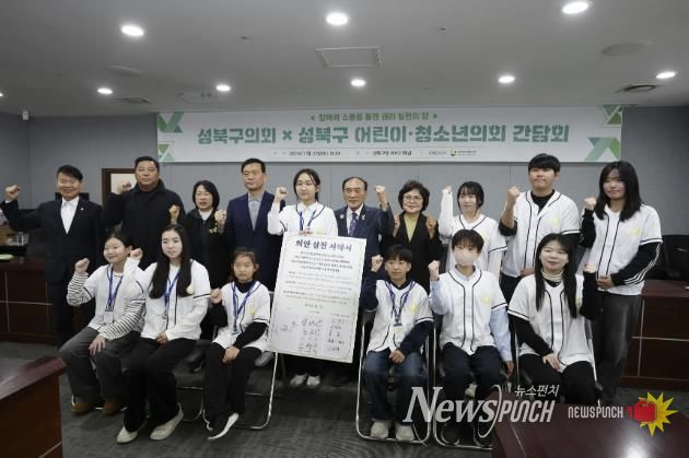 이번 간담회에는 성북구청장 이승로, 성북구의회 임태근 의장, 이인순·이관우·김경이·소형준 의원, 성북구 어린이·청소년의회 의원, 대학생 보좌관이 참석했다. 참석자들은 본회의에서 통과된 안건을 중심으로 질의응답을 진행했으며, 성북구 아동·청소년의 권리 증진과 성장을 위한 실천 서약식을 가졌다.