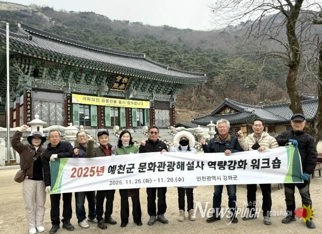 뉴스펀치 김길룡 기자 | 예천군은 25일부터 26일까지 2일간 인천광역시 강화군 일원에서 문화관광해설사 11명을 대상으로 ‘2025년 예천군 문화관광해설사 역량강화 워크숍’을 실시했다.