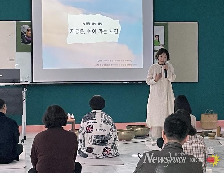 소진이란 심리․정서적 자원의 고갈(번아웃)을 의미하며, 이번 프로그램은 청소년 상담전문가들의 소진을 예방하고 정서적 안정과 회복을 돕기 위해 마련됐다. 프로그램은 싱잉볼 진동과 소리의 치유 원리를 활용한 명상 경험을 통해 심리적 긴장과 스트레스를 완화하고, 상담자로서 내적 안정과 정서적 여유를 회복하는 데 초점을 맞췄다.