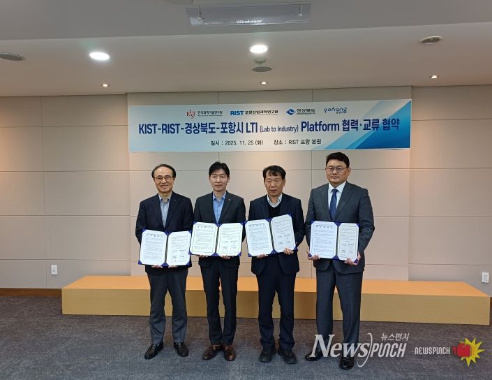 뉴스펀치 김길룡 기자 | 경상북도는 25일 포항산업과학연구원에서 포항시, 한국과학기술연구원(KIST), 포항산업과학연구원(RIST)과 함께 청정연료 생산기술 관련 ‘LTI 플랫폼 기반 그린-올 생산기술 개발 실증사업’ 추진을 위한 업무협약(MOU)을 체결했다.