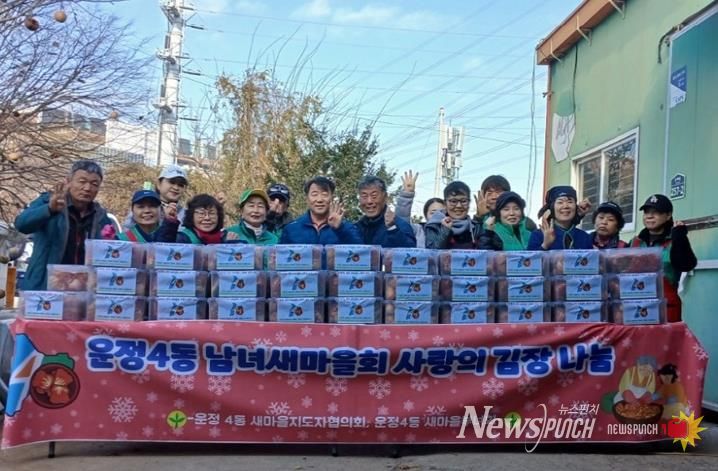 뉴스펀치 김길룡 기자 | 파주시 운정4동 남녀새마을회는 지난 22일, ‘사랑의 김장 나눔’행사를 열고 지역 사회에 따뜻한 온기를 전했다.