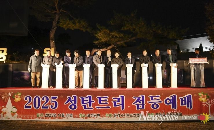 뉴스펀치 김길룡 기자 | 문경시는 지난 25일 성탄을 맞이하여 성탄 트리를 설치하고 문경시기독교연합회(회장 문은석) 주관으로 모전공원 광장에서 관내 기독교 신도 및 시민 등 200여 명이 참석한 가운데 ‘2025년 시민화합 성탄트리 점등식’을 했다.