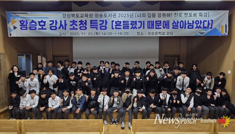 뉴스펀치 김길룡 기자 | 경상북도교육청 청송도서관은 11월 25일 오후 2시 20분, 청송중학교 강당에서 전교생 61명을 대상으로 '너의 길을 응원해! 진로 멘토링 특강'을 성공적으로 개최했다.