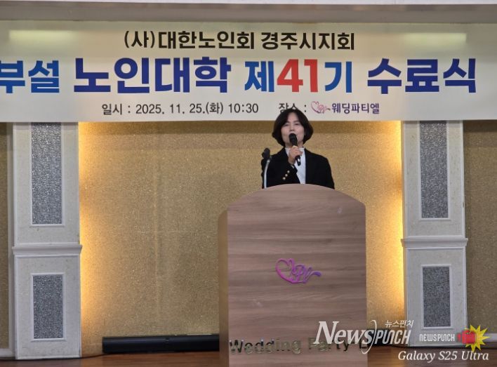 뉴스펀치 김길룡 기자 | 경주시는 대한노인회 경주시지회 부설 ‘경주시 노인대학 제41기 수료식’이 지난 25일 오전 11시 웨딩파티엘에서 성황리에 열렸다고 밝혔다.