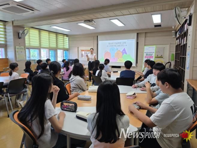 이날 교육은 청소년 자살 문제의 심각성과 예방 필요성을 공감하고, 합리적인 생각을 통해 건강하게 나를 지키는 방법 알기, 자살을 생각하는 친구를 알아차리고 도와주기 등 청소년들이 자신의 감정을 이해하고 건강하게 표현할 수 있는 활동으로 진행됐다.