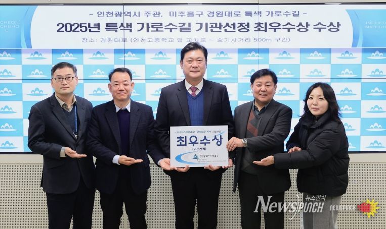 뉴스펀치 김길룡 기자 | 인천 미추홀구는 인천시가 실시한 ‘2025년 특색 가로수길 평가’에서 종합 1위를 차지했다고 26일 밝혔다.