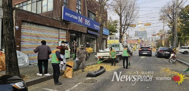 뉴스펀치 김길룡 기자 | 구리시 교문1동 행정복지센터는 지난 11월 24일, 가을철 낙엽으로 인한 통행 불편을 해소하고 쾌적한 생활환경을 조성하기 위해 교문1동 일대에서 환경정비 활동을 했다.