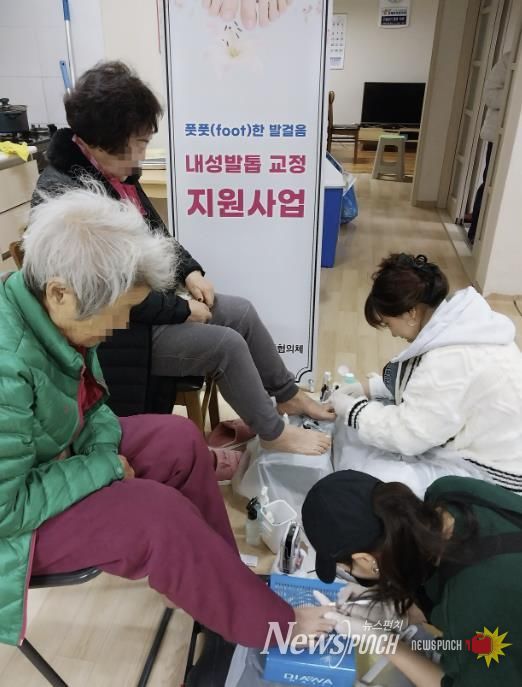 뉴스펀치 김길룡 기자 | 수원시 권선구 호매실동 지역사회보장협의체는 지난 25일, 나나즈 네일과 함께 내성발톱 교정 지원사업을 진행했다.