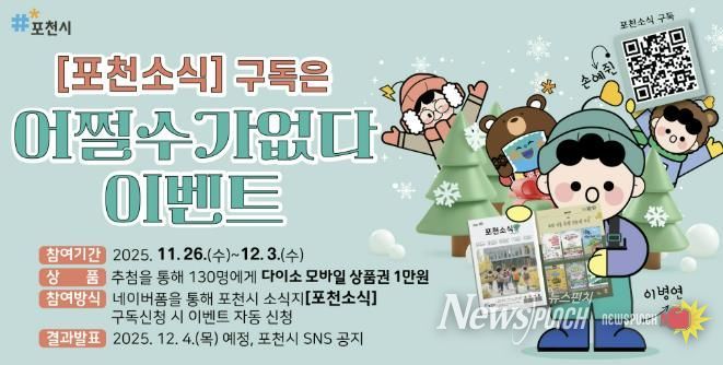 이번 이벤트는 12월 3일까지 진행되며, 시정 소식지 ‘포천소식’을 구독하면 별도의 절차 없이 자동으로 이벤트에 응모된다.